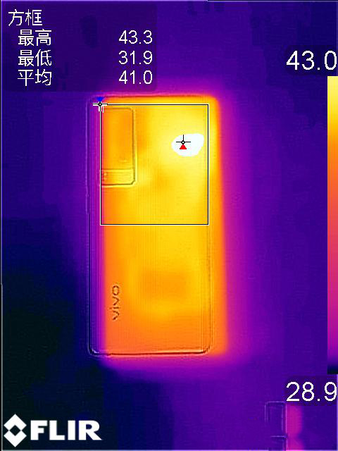 游戲過程中,我們測試了一下手機的溫度,最熱部分溫度達到43度。
