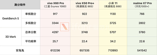 雖然跑分和日常使用體驗并不完全掛鉤,但本文依舊不能免俗,通過以下幾款軟件的跑分,讓大家直觀地了解三星Exynos 1080在X60 Pro上的性能表現。