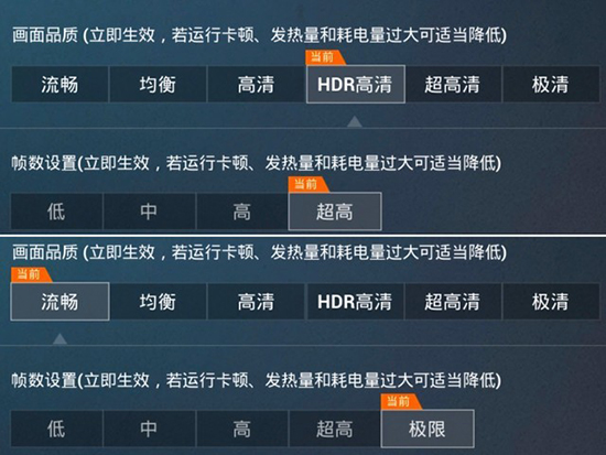 上:支持的《和平精英》最高畫質(zhì),下:支持的最高幀率