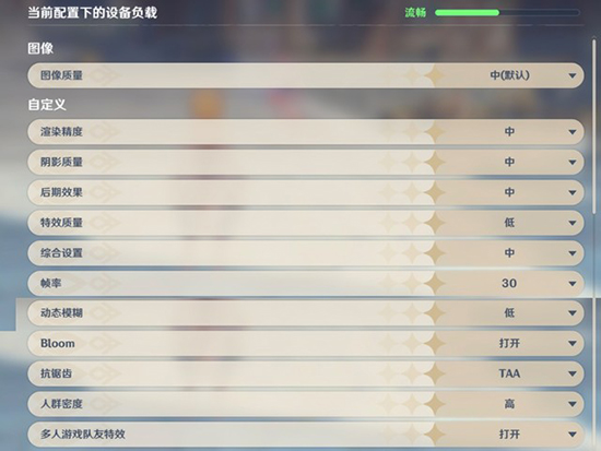 默認(rèn)“中”特效下的《原神》