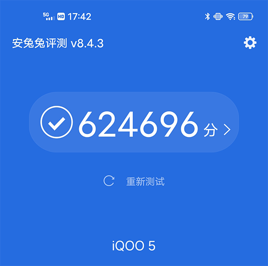 話不多數(shù),咱們直接來看一下跑分?jǐn)?shù)據(jù)。在安兔兔測試中,iQOO 5獲得了624696分的成績,跑分穩(wěn)居安卓手機(jī)性能榜單中的第一梯隊。這里順便提一下:目前安兔兔跑分榜單的前十名均搭載了驍龍865平臺,由此也可以看出它的強(qiáng)大。