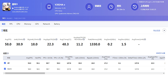 不過,在運行《崩壞3》的整個過程中,iQOO 5依舊交出了十分優(yōu)秀的答卷。配合GPU Turbo的優(yōu)化,在畫質全開的情況下,iQOO 5仍舊達到了平均58幀的運行幀率,這一數(shù)據已經十分接近《崩壞3》的滿幀運行狀態(tài),表現(xiàn)可謂是十分優(yōu)秀。