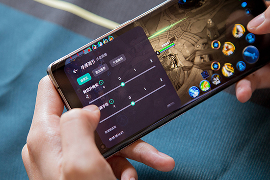 “操縱感”和“沉浸感”體現(xiàn)在手感調(diào)節(jié)、游戲?yàn)V鏡等方面,在手感調(diào)節(jié)中能夠自定義觸控靈敏度和觸控跟手性,玩家們可以自主選擇最適合自己的操作方式。而且在游戲過程中OPPO Reno5 Pro+還能自己設(shè)置:天下無雙、五連絕世的振動(dòng)反饋,再加上立體液冷散熱等電競(jìng)級(jí)別硬件,游戲?qū)嶋H體驗(yàn)比iPhone還要好。