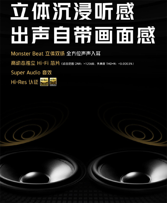 iQOO 7還為其雙揚(yáng)聲器配備了高動(dòng)態(tài)獨(dú)立Hi-Fi芯片(DNR>120dB,THD+N<0.0003%),能夠最大限度地還原本真音質(zhì)。此外還通過了Hi-Res認(rèn)證,同時(shí)持有Super Audio音效和兩個(gè)“小金標(biāo)”,這次對(duì)音質(zhì)要求高的發(fā)燒友可以期待一下啦。