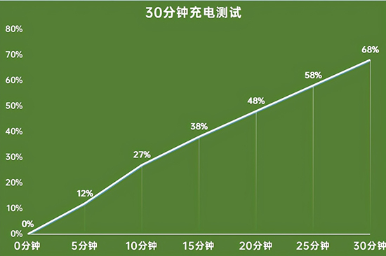 這里我們同樣進行了30分鐘快充測試,每隔5分鐘記錄一下充電進度,測試結(jié)果如下: