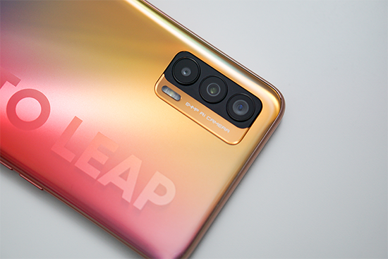 realme給V15配的是三攝像鏡頭組,一枚廣角主攝、一枚超廣角攝像頭以及一枚低使用率的微距鏡頭,可以理解成單湊數(shù)、雙實用的三攝影鏡頭組。它的三攝鏡頭組矩陣并不浮夸,就整齊緊湊地一字排列,外加兩層圓角矩形將其圍起來,中規(guī)中矩,個人覺得還算耐看吧。