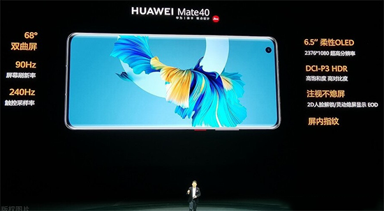 屏幕方面,Mate40采用了一塊6.5英寸、OLED材質(zhì)的曲面屏,曲度為68°,分辨率為2376 × 1080,支持90Hz刷新率及240Hz觸控采樣率;Mate40 Pro的屏幕同樣為OLED材質(zhì)的曲面屏,但是它的屏幕曲度達(dá)到了88°,尺寸為6.76英寸,分辨率為2772 × 1344,并支持與Mate40相同的刷新率和觸控采樣率。