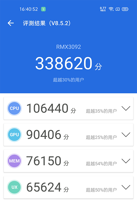 得益于天璣800U的低功耗特性,真我V15在“奮戰(zhàn)”一小時后電量只下降了13%,機身溫度也處于一個溫溫熱的狀態(tài),并不會影響到用戶的手感。