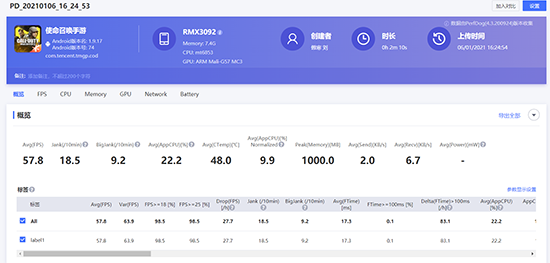 第二款游戲則是近日才上線的《使命召喚手游》,無論是槍械的后坐力、經(jīng)典的瞄具開鏡、彈道的還原都在真我V15上有著很好的呈現(xiàn)。perdog的測試數(shù)據(jù)也驗證了小編的言論,在開啟高特效高畫質(zhì)的情況下,平均幀率能夠達到57.8幀,操作絲滑且流暢。
