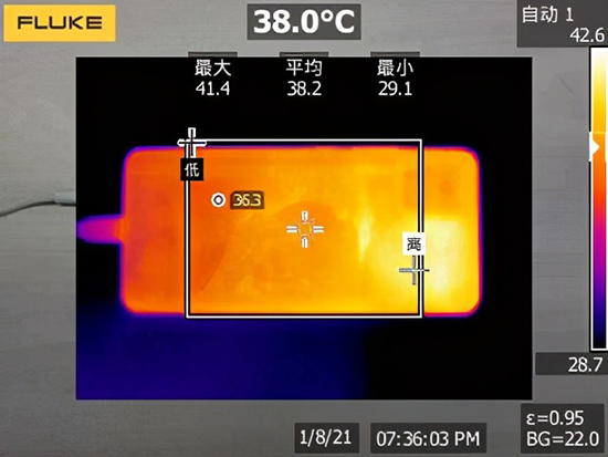 實(shí)際表現(xiàn)也是如此,在《王者榮耀》、《和平精英》和《原神》三個(gè)游戲連續(xù)總時(shí)長(zhǎng)1個(gè)小時(shí)的車輪戰(zhàn)之后,iQOO 7機(jī)身背部的平均溫度為38.2攝氏度,最高為41.4攝氏度,表現(xiàn)極為出色。