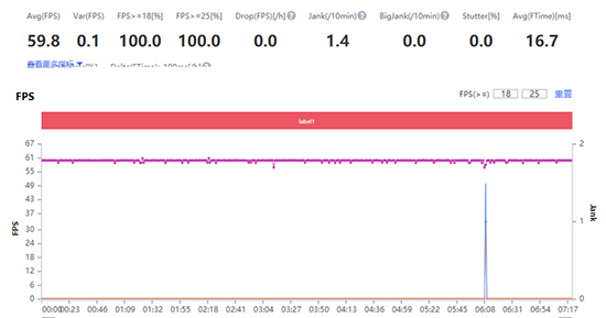 經(jīng)過實(shí)測,在運(yùn)行《王者榮耀》時(shí),手機(jī)的平均幀率能夠達(dá)到59.8FPS,游戲過程非常的流暢。