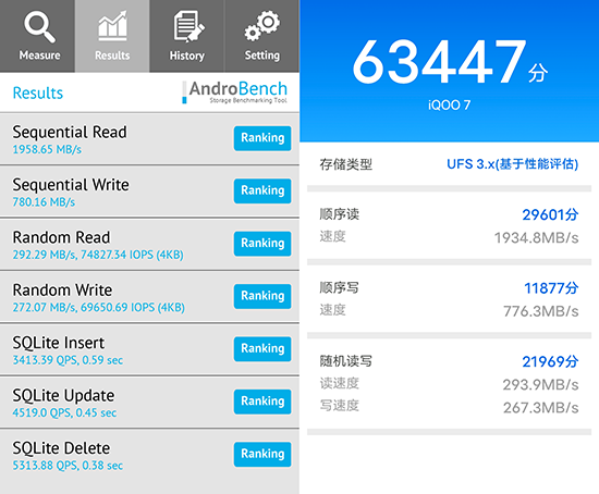 增強(qiáng)版LPDDR5閃存芯片的數(shù)據(jù)傳輸速率從此前的5500Mbps提升至了6400Mbps,相比上代LPDDR5閃存芯片在速率上提升了16.3%,順序讀取速率最高提升13.2%。增強(qiáng)版LPDDR5和UFS 3.1的組合有效加強(qiáng)了iQOO 7的內(nèi)存帶寬和讀寫性能,使其不會成為性能發(fā)揮的瓶頸。