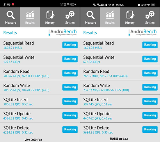 vivo x60 Pro的閃存雖然和不少旗艦手機一樣采用了UFS3.1,不過它的性能測試結(jié)果卻讓人非常意外,特別連續(xù)寫入和隨機寫入方面大幅領(lǐng)先了一般驍龍865旗艦上搭載的UFS3.1,這將為軟件的安裝、更新速度帶來明顯的提升。在筆者測試過的機型中,幾乎只有最新的華為P/Mate系列旗艦?zāi)苓_到如此高的水準。