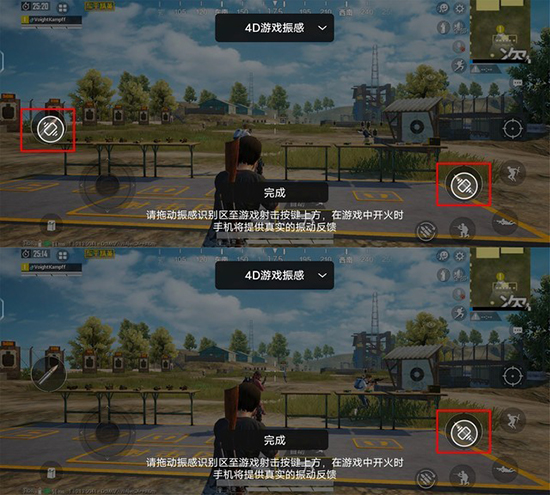 手動(dòng)識(shí)別模式下能夠?qū)崿F(xiàn)的振動(dòng)反饋只有兩種:射擊時(shí)、附近車輛開(kāi)過(guò)時(shí)。射擊時(shí)大家可以選擇按下屏幕左右兩側(cè)開(kāi)火鍵時(shí)都反饋,也可以只設(shè)定一個(gè)開(kāi)火鍵有反饋,另一個(gè)沒(méi)有。