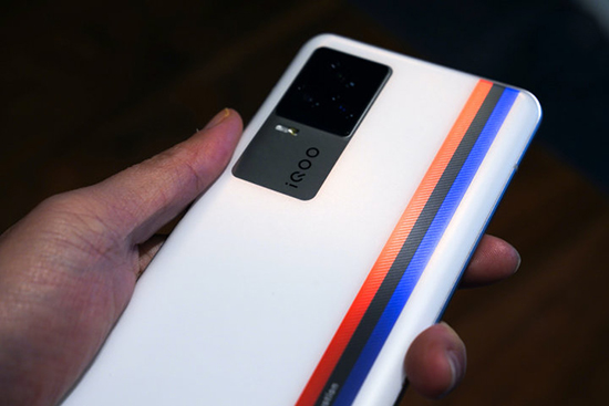 在手機(jī)正面ID設(shè)計(jì)日漸趨同的當(dāng)下,翻過(guò)來(lái)的手機(jī)背面成為了各大廠商的設(shè)計(jì)的主要發(fā)力點(diǎn),尤其是iQOO 5 Pro與BMWM Motosport合作的傳奇版設(shè)計(jì)也延續(xù)到了iQOO 7上,啞光純白背板搭配紅、黑、藍(lán)三色條紋的設(shè)計(jì)既有傳承也藏著新的巧思。