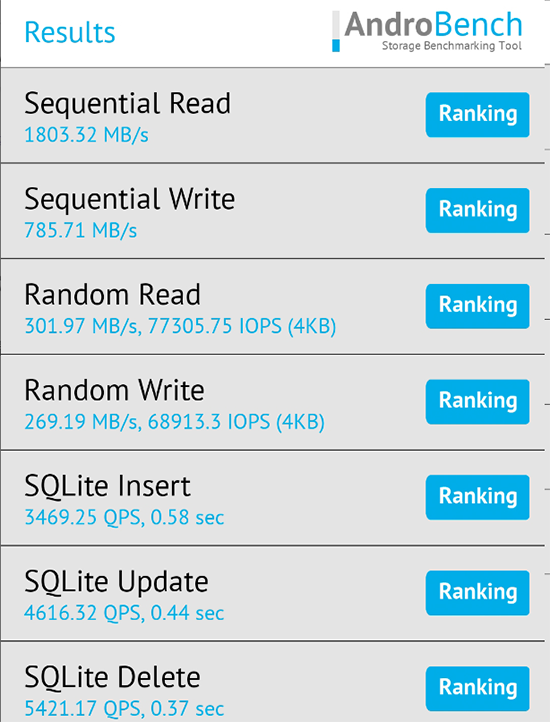 可以說,iQOO 7的強悍不限于處理器性能,其還搭載了增強版UFS 3.1超快閃存。從AndroBench的測試結果來看,iQOO 7的連續(xù)讀取速度為1802.32MB/s,連續(xù)寫入速度為785.71MB/s。增強版UFS 3.1超快閃存的加入,讓iQOO 7運行大部分APP時,基本上都可以實現秒啟動,從而帶來更加流暢的運行體驗。