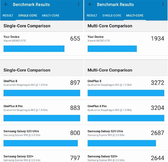GeekBench5 5.25版本測試中 CPU跑分單核655分 多核1934分