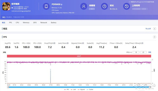 即使是流暢畫質(zhì)+90幀+打開抗鋸齒,OPPO Reno5 Pro+仍然保持了非常穩(wěn)定的表現(xiàn),平均幀為89.6幀,每10分鐘卡頓數(shù)僅為0.4,CPU溫度為58.6℃(CPU溫度≠機(jī)身溫度),并且在25分鐘的游戲時(shí)間里,Reno5 Pro+機(jī)身一直都是溫?zé)釥顟B(tài),并沒有出現(xiàn)發(fā)熱導(dǎo)致降頻掉幀的情況,游戲體驗(yàn)很好。