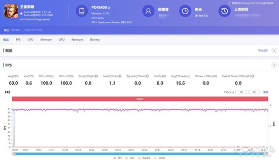 至于王者榮耀,全最高畫質(zhì)對(duì)OPPO Reno5 Pro+來說也只是小兒科,全程60幀不在話下,幀率曲線十分平滑。