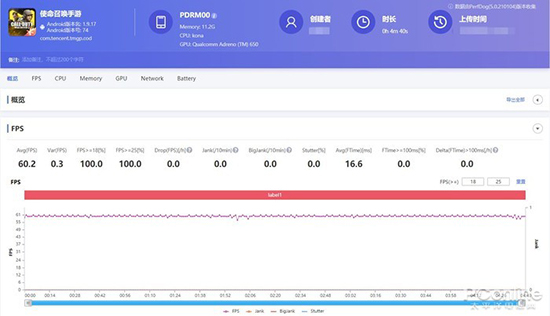 根據(jù)OPPO Reno5 Pro+的配置,我就選了熱門的使命召喚手游、和平精英以及王者榮耀這三個(gè)游戲,用PerfDog記錄游戲運(yùn)行的幀率情況,看看HyperBoost4.0引擎加持下的Reno5 Pro+表現(xiàn)如何。