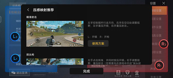 開啟壓感的方法也很簡單,首先我們在游戲界面左上方調(diào)出快捷菜單開啟“壓力感應(yīng)”,接著設(shè)置L區(qū)和R區(qū)的映射功能即可。