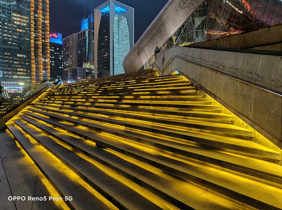 接著再來到最考驗手機(jī)影像素質(zhì)的夜間場景,得益于OPPO Reno5 Pro+所具備IMX766索尼大底的優(yōu)勢,進(jìn)光量更多,呈現(xiàn)出來的細(xì)節(jié)相較下也要更豐富一些,包括遠(yuǎn)處大樓窗戶、以及墻壁細(xì)節(jié)方面,OPPO Reno5 Pro+都呈現(xiàn)出自己絕佳的硬軟件優(yōu)勢。