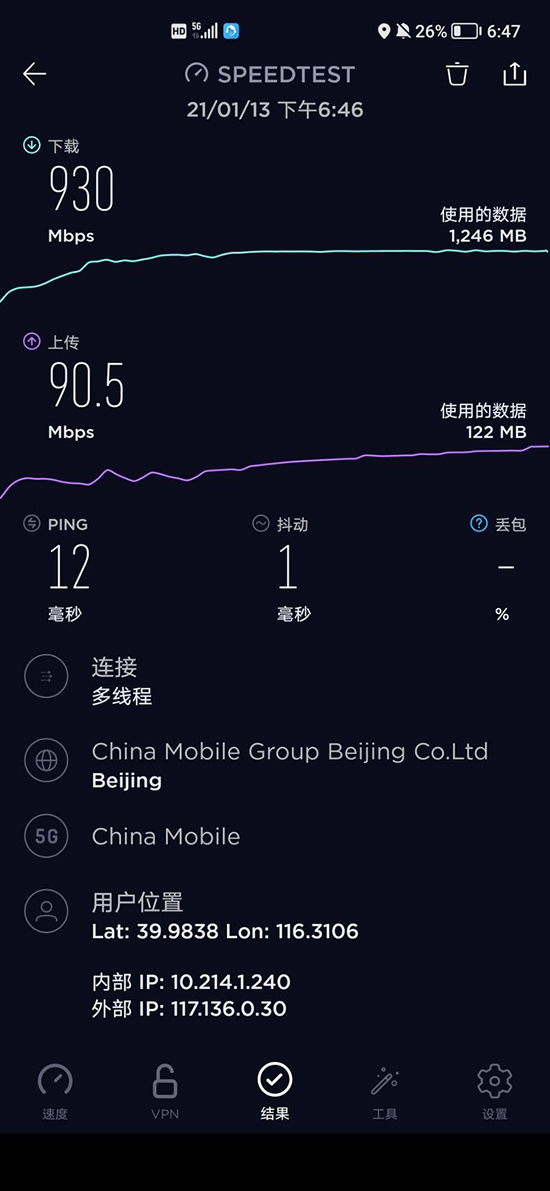 而從專業(yè)5G測(cè)速軟件Speedtest實(shí)際測(cè)試結(jié)果來(lái)看,也證實(shí)了我本人此前的觀點(diǎn)。榮耀V40的5G速率下行峰值速率高達(dá)930Mbps/s,上行速率也達(dá)到了90.5Mbps/s,超出絕大部分我們?cè)谕坏攸c(diǎn)測(cè)試過(guò)的機(jī)型。