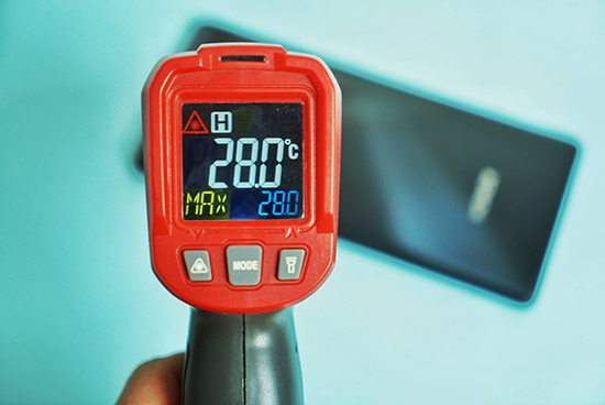 性能方面的出色表現(xiàn)和流暢的游戲體驗已經(jīng)見識到了,那么散熱怎么樣呢?實測榮耀V40在室溫15℃左右,連續(xù)40分鐘左右時間游戲的情況下,榮耀V40整體的發(fā)熱表現(xiàn)還能接受,測試結(jié)果顯示只有28℃,最高溫度區(qū)域集中在相機部分。想要更出色的散熱表現(xiàn),小伙伴們還可以配一個散熱背夾,不管是任何時候都可以帶來出色的散熱表現(xiàn)。