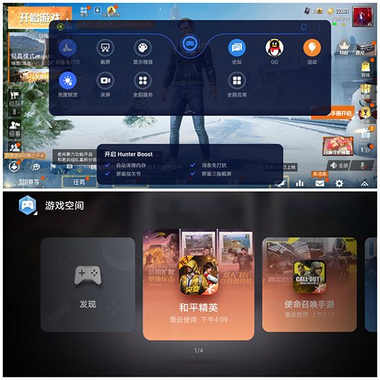玩大型手游的時候,更有專屬的游戲空間和游戲助手,進(jìn)入游戲界面默認(rèn)自動開啟,可以通過屏幕下滑調(diào)出游戲狀態(tài)欄,進(jìn)行消息屏蔽的設(shè)置、顯示效果、后臺清理、錄屏等輔助性操作,快速完成保證更好的游戲體驗(yàn)。
