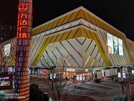 拍夜景之所以難,就是因?yàn)槊靼祵Ρ忍^強(qiáng)烈,而榮耀V40的5000萬像素RYYB鏡頭在暗光拍攝下,既能保持較高的ISO值,同時能很好的控制畫面噪點(diǎn)。在榮耀V40的夜景樣張中可以明顯看到,照片中不僅僅暗處的細(xì)節(jié)被拍攝的很清楚,而且高亮光的地方也沒有出現(xiàn)過曝的情況,甚至包括遠(yuǎn)處的亮光以及陰影都被拍攝的很合理。