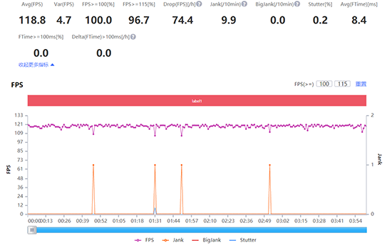 另一款游戲《穿越火線:槍戰(zhàn)王者》目前已近適配榮耀V40的120幀模式。實(shí)測(cè)120幀+高畫質(zhì)模式下,平均幀率可達(dá)118.8且穩(wěn)定性很高,表現(xiàn)出乎意料。