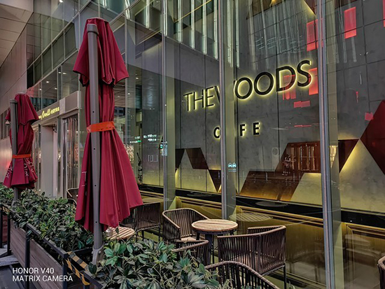在夜景模式下,榮耀V40大尺寸傳感器可以帶來(lái)更多的進(jìn)光量,并且通過(guò)超級(jí)夜景拍攝的照片亮度更好,色彩層次也豐富,整體給人更通透的感覺。在細(xì)節(jié)上,超級(jí)夜景功能可以更忠實(shí)的還原場(chǎng)景亮暗細(xì)節(jié),畫面控噪能力出色,十分干凈。