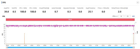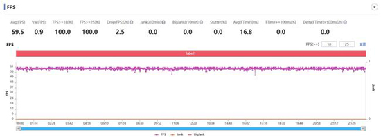 在該模式下,榮耀V40的平均幀率維持在59.5℃,依舊非常穩(wěn),能夠流暢運(yùn)行。