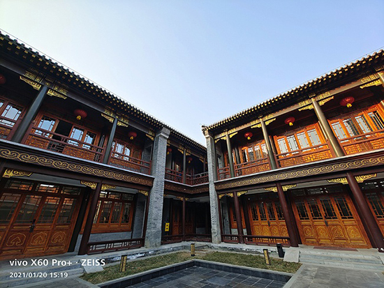 在大面積灰白色的場景中,如果白平衡有所偏差會被表現(xiàn)得非常明顯,而在X60 Pro+樣張中,灰色磚石、白墻、綠植、朱門、燈籠的色彩還原都很準確。
