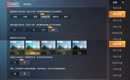 接下來直接進行游戲的體驗,依舊是大家熟悉的《和平精英》,條件:“HDR高清+極限(60FPS)+抗鋸齒開+陰影開”。