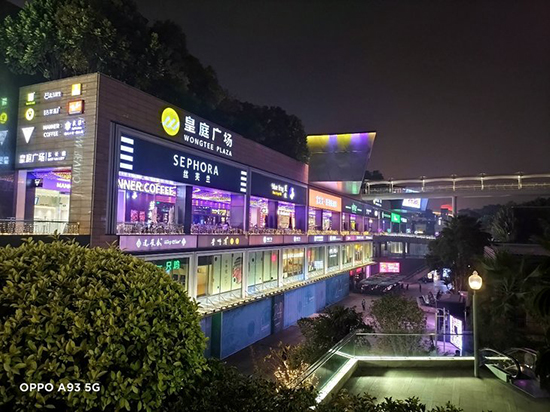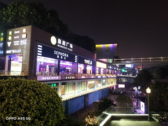 在夜景模式下,可以看到OPPO A93的樣張更加通透,燈箱等高光部分壓制更到位,可以保留下更多的細(xì)節(jié),整體觀感有比較明顯的提升。同時(shí),A93在夜景模式下的拍照成像速度也很快,等待時(shí)間較短,能夠帶來(lái)更好的拍照體驗(yàn)。