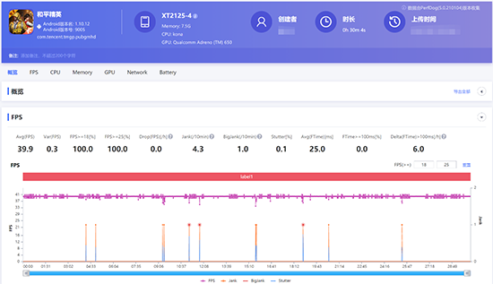 Motorola edge s 30分鐘游戲平均幀率為39.9幀