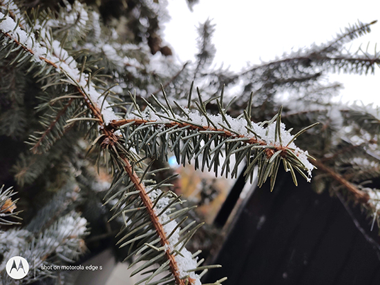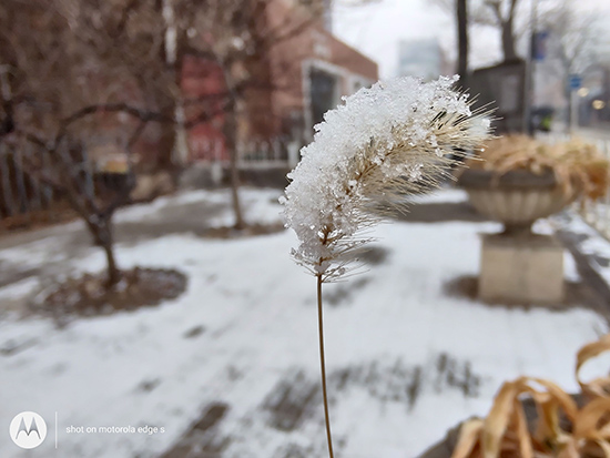 光線明亮條件下,其實(shí)目前大多數(shù)手機(jī)都能拍出不錯(cuò)的圖片效果,不過在光線條件稍差情況下,差距就比較明顯了。體驗(yàn) motorola edge s 期間,恰巧趕上北京下雪天,我們也拿著它拍攝了一組雪景樣張。就實(shí)際樣張表現(xiàn)來看,它的微距表現(xiàn)比較突出,無論對(duì)焦還是成片效果都很棒。