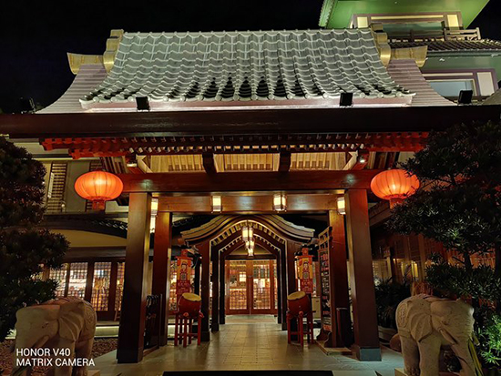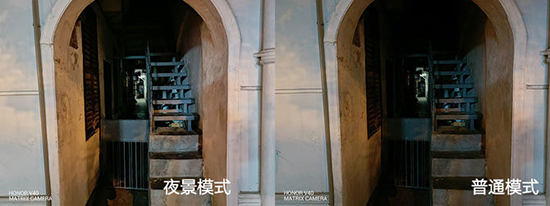 可以看到,榮耀V40開啟超級夜景后畫面的亮度提升了,而光線的控制也更好,燈光部分沒有出現(xiàn)過曝的問題,而背景的細(xì)節(jié)也展出了出來,整個畫面變得更為通透。