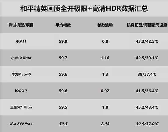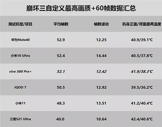 vivo X60 Pro+《崩壞三》的平均幀數(shù)略高于iQOO 7,是目前驍龍888機(jī)型中幀數(shù)最高的,但還是沒超過驍龍865的小米10 Ultra,發(fā)熱也更高。