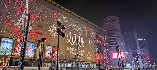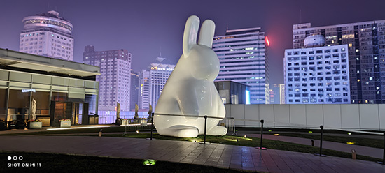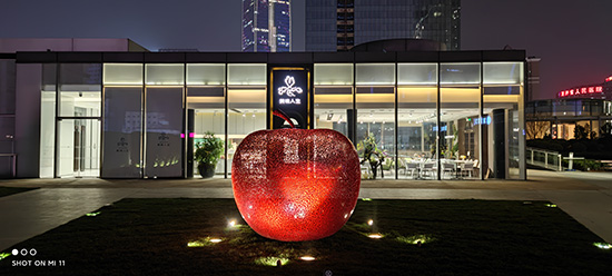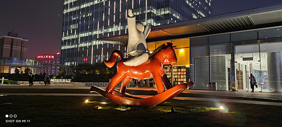 夜景模式下,天空的處理干凈如洗,但不是那種肆意涂抹,而是拿捏住建筑物與天空的關(guān)系,很自然的處理。物體暗部依然保留了豐富的細(xì)節(jié),沒有出現(xiàn)被夜景模式“一刀切”的情況,并且近景物體的質(zhì)感也能被準(zhǔn)確地呈現(xiàn)出來。當(dāng)然,暗部也很難看到噪點(diǎn)。