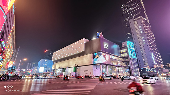 這是超廣角和無變焦模式下的對(duì)比,看得出小米11的超廣角的效果還是很明顯的。