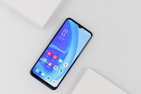 OPPO A55正面配備的是一塊6.5英寸的LCD材質(zhì)的水滴屏,采用20:9的修長比例,分辨率為1600*720,屏占比達(dá)到了89%,支持HD+分辨率和60Hz刷新率,覆蓋71% NTSC色域,對比度為1500:1,亮度典型值480nit,支持4096級精細(xì)調(diào)光,低亮部分調(diào)光更加細(xì)膩舒適。