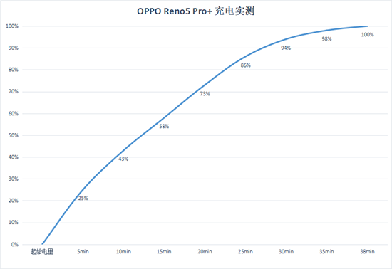 補(bǔ)充續(xù)航的充電方面,商用將近1年的65W超級(jí)閃充現(xiàn)在依舊是快充行列的第一梯隊(duì)。我們特意將OPPO Reno5 Pro+電量耗至1%開始充電,在30分鐘后已經(jīng)能夠充進(jìn)94%的電量,充至100%狀態(tài)也僅需要38分鐘,回血速度十分“迅猛”。