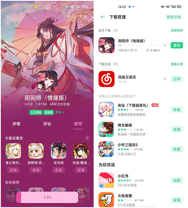 由于受到聯(lián)通運(yùn)營商網(wǎng)速限速原因(最高300Mbps),本次網(wǎng)速測試并沒有完全發(fā)揮出兩者的最高水準(zhǔn),具體來看,天璣800在5G速度上和華為麒麟820不相上下,在日常環(huán)境中能夠達(dá)到40MB/s的下載速度以及9.6MB/s的上傳速度,這也就意味著日常下載一部1.2GB電影僅僅需要30秒的時(shí)間,相比于4G已經(jīng)是翻天覆地地提升了。嘗試著使用OPPO A92s下載游戲《陰陽師》,這5G速度真可以用“嗖嗖嗖”來形容,非???。不僅如此,在OPPO實(shí)驗(yàn)室環(huán)境下,A92s的下載速度高達(dá)2.3Gbps,由此可見天璣800的5G性能。