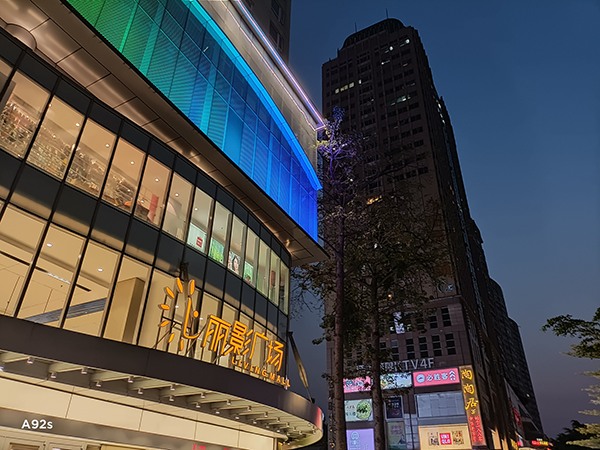 對于2000元機型來說,夜景就是最考驗手機拍照實力的場景。OPPO A92s保持了畫面整體的亮度協(xié)調(diào)性,高光抑制恰到好處,不至于過曝,亮部細節(jié)處理到位,沒有損失過多細節(jié)。容易出現(xiàn)噪點的天空,在經(jīng)過天璣800強大的AI降噪處理之后,有著非常純凈的表現(xiàn)。值得一提的是,OPPO A92s夜景成像速度在1s左右,可見天璣800的優(yōu)化算法還是挺不錯的。