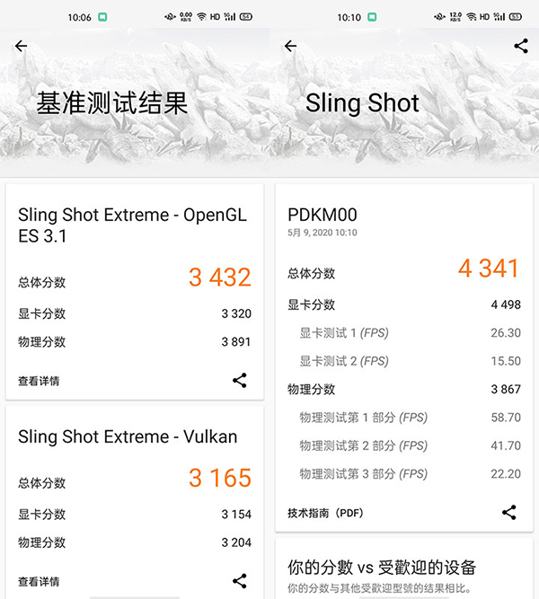 此外,為了測(cè)試Adreno 610 GPU的性能,我們使用3D Mark的Sling Shot Extreme和Sling Shot為OPPO A92s跑分,OPPO A92s在這兩項(xiàng)分別獲得了3432分和4341分,符合該檔位硬件的基本水平。