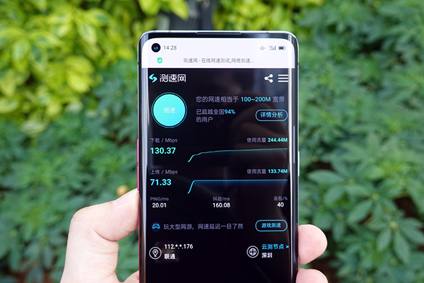通過實(shí)測(cè),可以看到OPPO Reno3 Pro 在5G狀態(tài)下的下載速度為130.37M/s,上傳速度為71.33M/s。