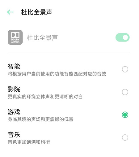 OPPO Ace2杜比全景聲設(shè)置頁面