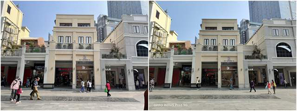再來(lái)看下拍攝建筑的畫(huà)面對(duì)比,雖說(shuō)都是逆光環(huán)境,但是兩款機(jī)型在白天的拍攝效果都清晰可見(jiàn)。在硬件上,OPPO Reno5 Pro+搭載了OPPO聯(lián)合索尼定制的IMX766 CMOS,其主攝像素為5000萬(wàn),不僅成像效果更出色,其進(jìn)光量也提升了63.8%,因此對(duì)畫(huà)面暗部細(xì)節(jié)的捕捉的能力也十分強(qiáng)勁,無(wú)論是建筑室內(nèi),還是外部的建筑物,都一一記錄下來(lái)了。而iPhone 12對(duì)暗光拍攝的表現(xiàn)也非常不錯(cuò),畫(huà)面也同樣清晰。